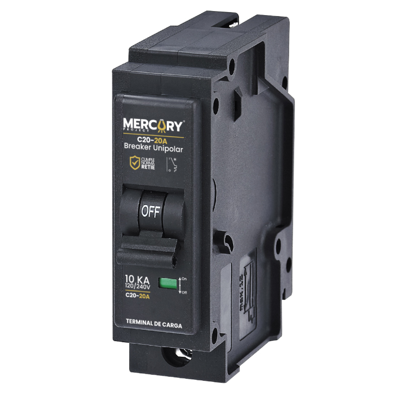 Interruptor termomagnético ideal para proteger contra sobrecargas y cortocircuitos. Tiene 1 Polo, capacidad de 20 amperios. Capacidad de corte de 10 kA. De uso exclusivo para cables de cobre_ Tipo de curva de disparo: C _Temperatura de operación: -20 a 50°C