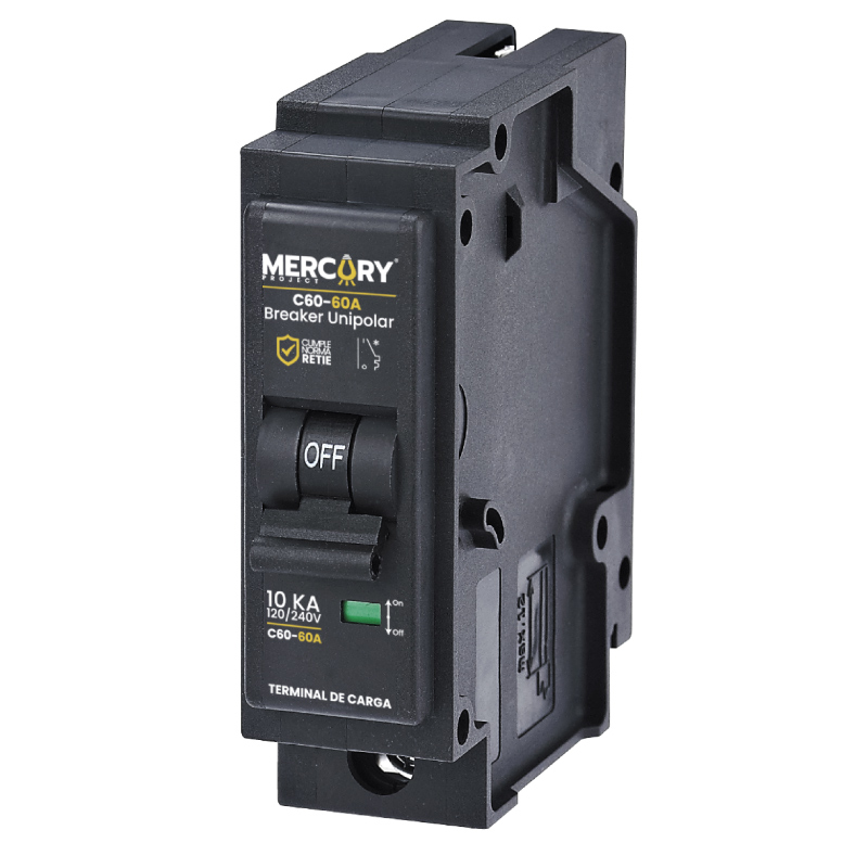 Interruptor termomagnético ideal para proteger contra sobrecargas y cortocircuitos. Tiene 1 Polo, capacidad de 60 amperios. Capacidad de corte de 10 kA. De uso exclusivo para cables de cobre_ Tipo de curva de disparo: C _Temperatura de operación: -20 a 50°C