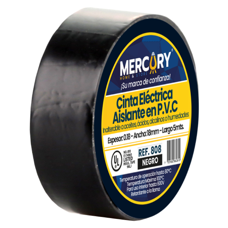 Cinta eléctrica aislante de 5 metros color negro en PVC, es resistente a las altas temperaturas, es retardante de llama, resistente a los rayos ultravioleta, la abrasión, la humedad, el álcalis, los ácidos y la corrosión, su elongación es hasta 190%, se usa para reparación, aislamiento y marcación de todo tipo de cables eléctricos en interiores, con excelente capacidad dieléctrica, uso doméstico y profesional para cableados, en uniones, encintados y demás.