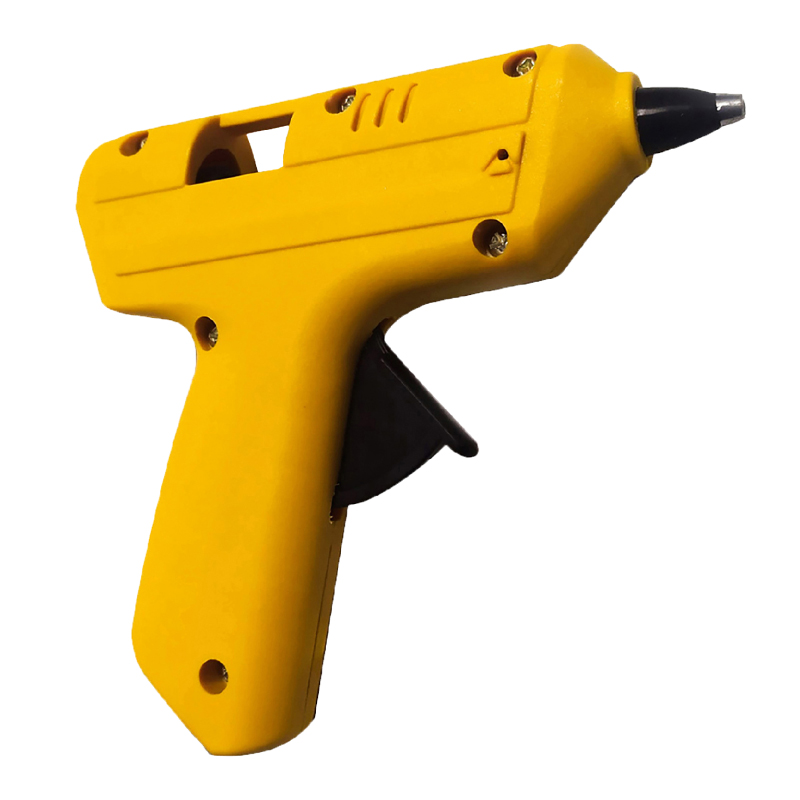 Pistola silicona grande amarilla, ideal para pegar plásticos, tela, metal, fomi, juguetes, madera papel, etc. Voltaje 110V, Frecuencia: 50/60 Hz, Potencia: 10WColor: Amarillo, Longitud de cable: 1m.