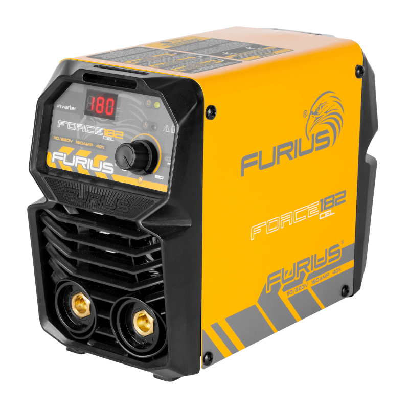 Soldador inversor bivoltaje portable, compacto y con pantalla LED para MMA y TIG Raspado bivoltaje. 10-140A (110V) y 10-180A (220V). Diámetro de electrodos 1/16"(1.6 mm) a 5/32"(4.0mm) en 6010, 6011 (todos los Celulósicos), 6013 (todos los Rutílicos), 7018, 7014, 7024 (todos los básicos), Inox SS, Fundición, Al, Ni, todos los tipos de electrodos. El ciclo de trabajo del electrodo 1/16"- 3/32" es 100%; de 1/8” es 60% y de 5/32" es 40%. Cuenta con tecnología AntiStick, ArcForce y HotStart. Incluye: pinza masa y portaelectrodo con conexión 10/25. Peso 2,2 kg