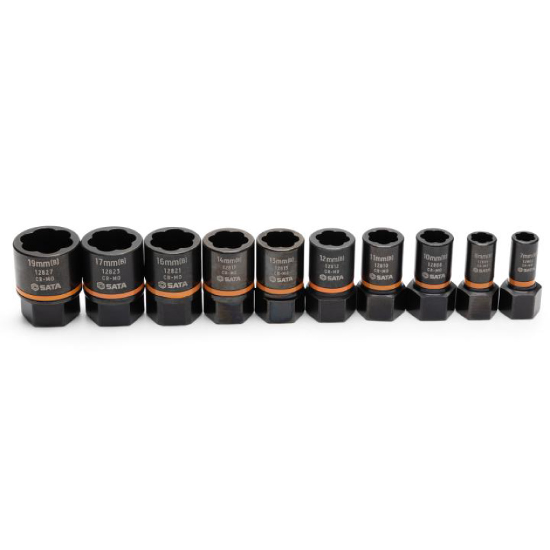 Copas de impacto con canales cónicos para facilitar el agarre en el tornillo desgastado o dañado. Herramientas diseñadas para altos torques. Aleación en Cromo Molibdeno que permite una alta resistencia. Estampada en laser y en bajo relieve para fácil identificación. Acabado Fosfato negro. Garantía de por vida. No aplica para los estuches. Diseño bidireccional para ajustar o aflojar tornillos desgastados o dañados. Dados de tamaño dual para trabajar con tornillos en milímetros y pulgadas. Remueve tornillos de cabeza redondeada, desgastada y oxidada.