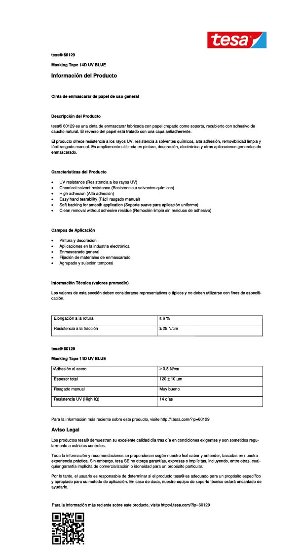 Cinta de papel resistente a los rayos UV para aplicaciones en exteriores (hasta 2 semanas): resistencia adhesiva equilibrada, para trabajos de pintura precisos, fácil de usar. La Cinta de Enmascarar Azul de tesa es una cinta ligeramente crepitada que consiste en un sustrato recubierto con una masa adhesiva de caucho natural. Es fácil de usar y se puede rasgar a mano. Se adapta particularmente bien a las tareas de pintura al aire libre, incluso en superficies rugosas, y se puede usar hasta por 2 semanas, gracias a su resistencia a los rayos UV. La cinta azul de tesa es su mejor aliada en sus proyectos arquitectónicos.