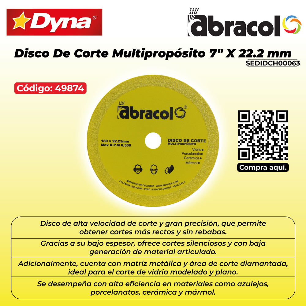 Disco de alta velocidad de corte y gran precisión, que permite obtener cortes más rectos y sin rebabas. Gracias a su bajo espesor, ofrece cortes silenciosos y con baja generación de material particulado. Adicionalmente, cuenta con matriz metálica y área de corte diamantada, ideal para el corte de vidrio modelado y plano. Se desempeña con alta eficiencia en materiales como azulejos, porcelanatos, cerámica y mármol.