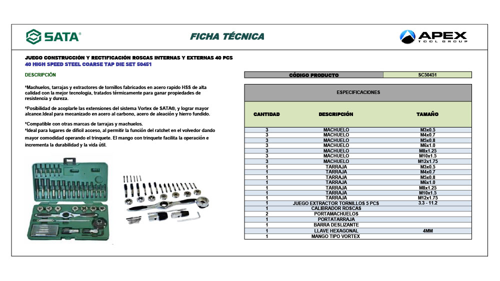 El cómodo mango en T con ratchet elimina el giro de mano sobre mano para un trabajo más rápido. El mango ergonómico mejora el agarre y el torque al tiempo que reduce la fatiga de la mano. El tratamiento térmico aumenta la resistencia a la corrosión y la oxidación, lo que proporciona un trabajo más suave.