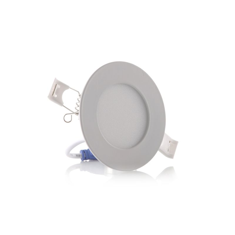 Voltaje: 85-265V Vatios: 3W Color luz: blanca 6500K Diametro: 2,5 pulgadas