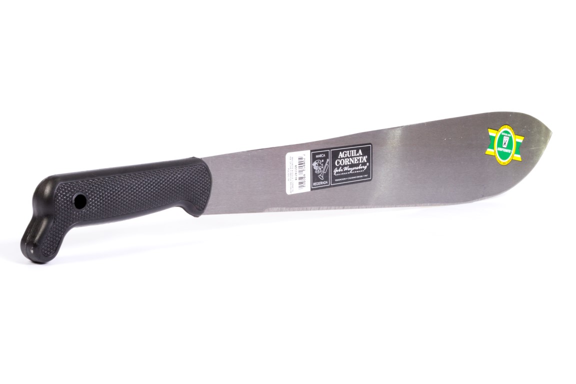 Machete de alta calidad, adecuado para trabajo pesado, con filo duradero y resistente, mango fundido antideslizable para brindar mas seguridad y mejor agarre. IVA 5. Hoja de acero inoxidable ideal para cortar y podar. Largo 457mm aprox.