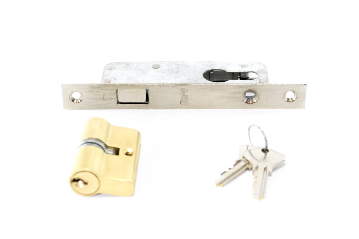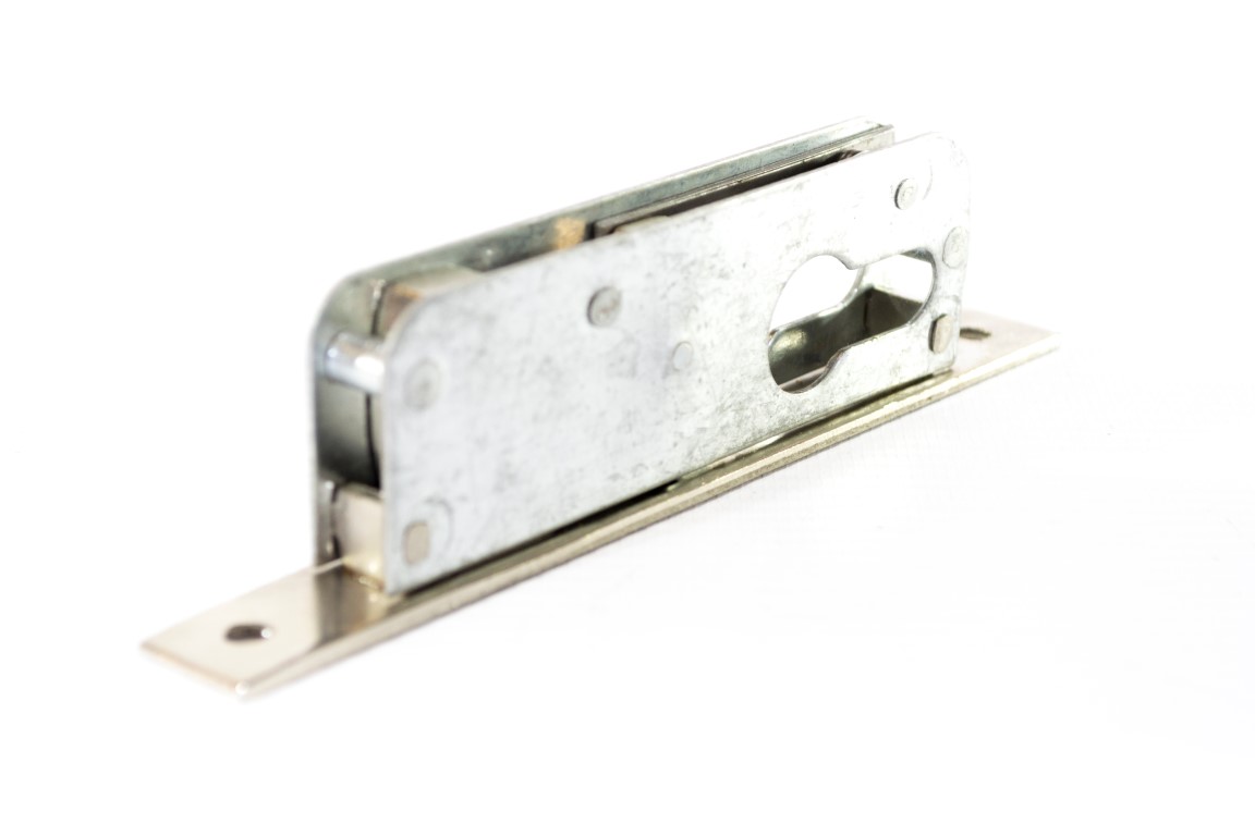 Cerradura de incrustar tipo pico de loro con cilindro sencillo o doble en latón, diseñada para brindar seguridad en puertas y ventanas corredizas o batientes. Su diseño invertible permite una instalación versátil. Fabricada en cold rolled calibre 12 con un resistente macho en zamak para mayor durabilidad. Cuenta con un centro de instalación de 16 mm y es adecuada para puertas de hasta 50 mm de espesor, garantizando un ajuste preciso y seguro. incluye escudos del cilindro