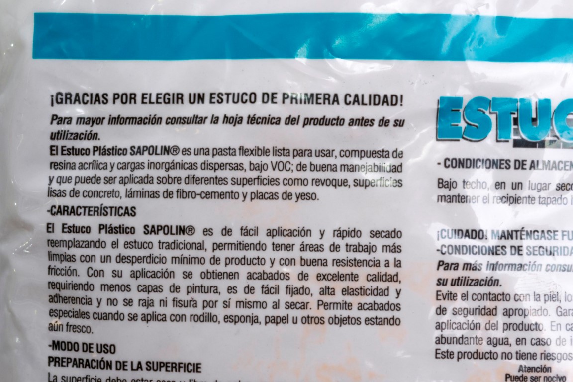 El estuco plastico sapolin es de facil aplicacion y rapido secado reemplazando el estuco tradicional, permitiendo tener areas de trabajo mas limpias con un desperdicio minimo de producto y con buena resistencia a la friccion. con su aplicacion se obtienen acabados de excelente calidad, requiriendo menos manos de pintura.