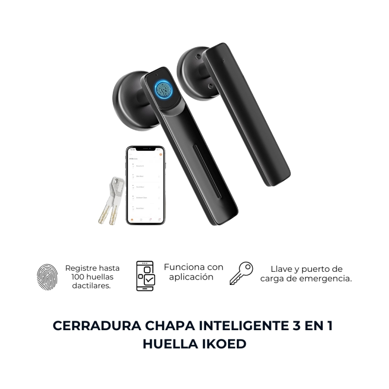 Dimensiones Y Materiales: Alto: 18 Cm. Ancho: 2.7 Cm. Largo: 8.53 Cm. Material: Aleación De Zinc. Capacidad De Huellas Dactilares: Hasta 100 Registros. Velocidad De Reconocimiento: 0.5 Segundos. Tasa De Reconocimiento: Superior Al 98%. Espesor De Puerta Compatible: De 35 Mm A 55 Mm (1.38 A 2.16 Pulgadas). Pestillo Ajustable: 2-3/8 Pulgadas (60 Mm) O 2-3/4 Pulgadas (70 Mm). Modos De Desbloqueo: Huellas Dactilares, Aplicación Móvil Y Llaves Mecánicas De Respaldo. Control De Aplicación: Gestión De Usuarios, Configuración De Modos De Acceso Y Visualización De Registros De Acceso. Alimentación: Funciona Con 4 Pilas Aaa (No Incluidas) Y Dispone De Puerto Micro Usb Para Emergencias.