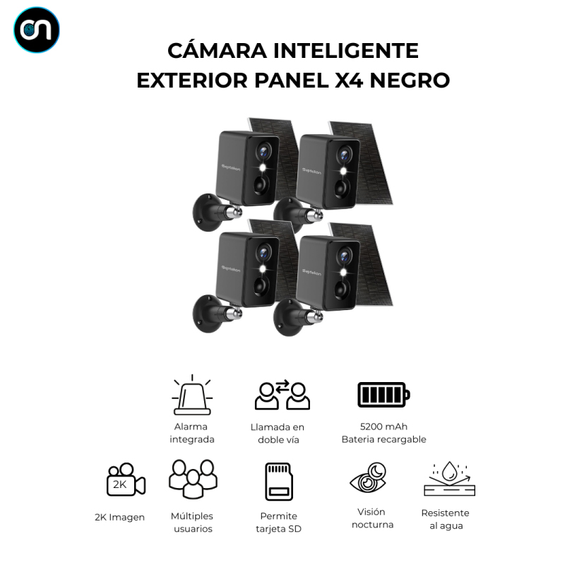 Cámara De Seguridad Inalámbrica Ofrece Video En Resolución 2K (3Mp) Con Visión Nocturna En Color. Cada Cámara Cuenta Con Una Batería Recargable De 5200 Mah Y Se Alimenta Mediante Paneles Solares. Detección De Movimiento Mediante Sensores Pir Y Tecnología Ia, Permitiendo Identificar Personas, Mascotas, Paquetes O Vehículos, Y Activar Una Sirena Disuasoria En Caso De Intrusión. Ofrece Comunicación Bidireccional En Tiempo Real Y Permite Compartir El Acceso Con Múltiples Usuarios. Almacenamiento En La Nube O En Tarjeta Microsd De Hasta 128 Gb (No Incluida). Certificación Ip66. Incluye Soporte De Instalación Ajustable Y Funciona A Través De La App Septekon Home.