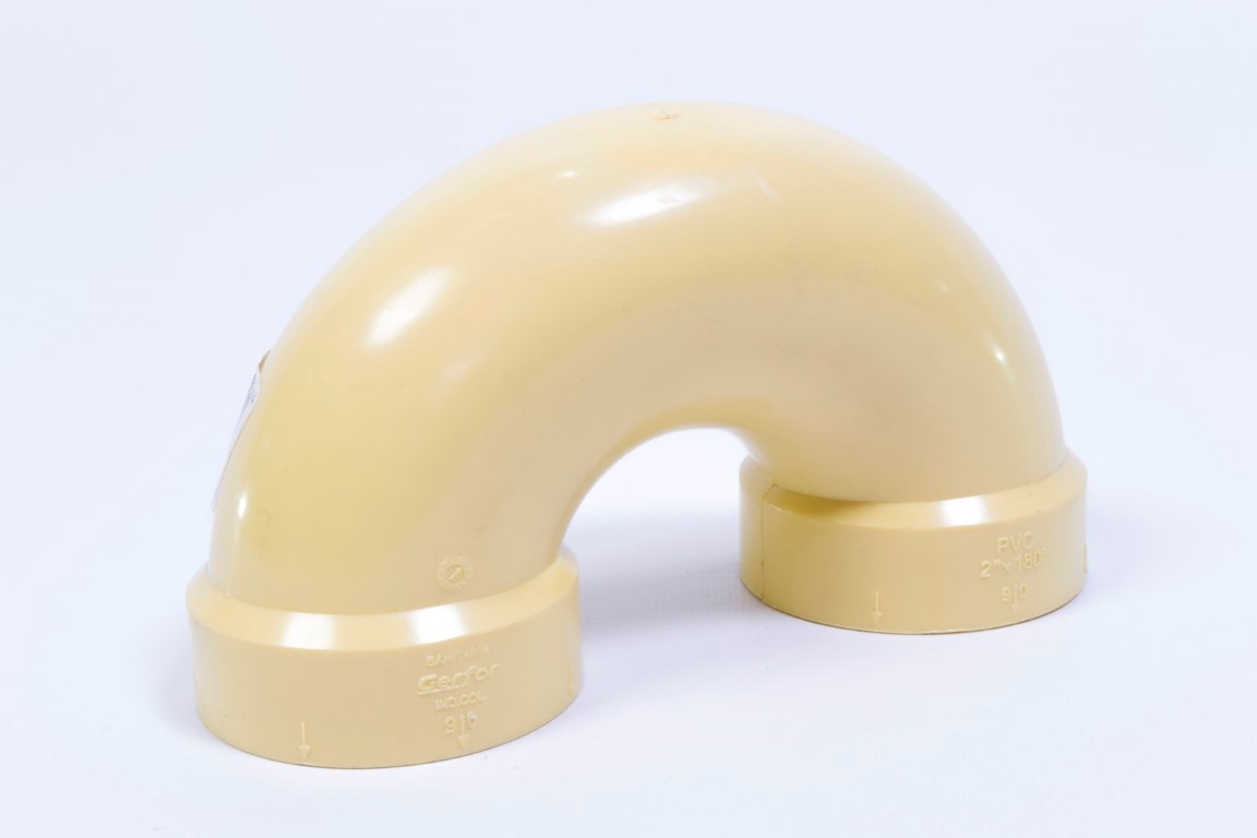 Accesorio que funciona como sello hidraulico evitando que devuelvan malos olores de la red sanitaria. Accesorio de PVC fabricado por inyección campana por campana, angulo de 180 , NTC 1341