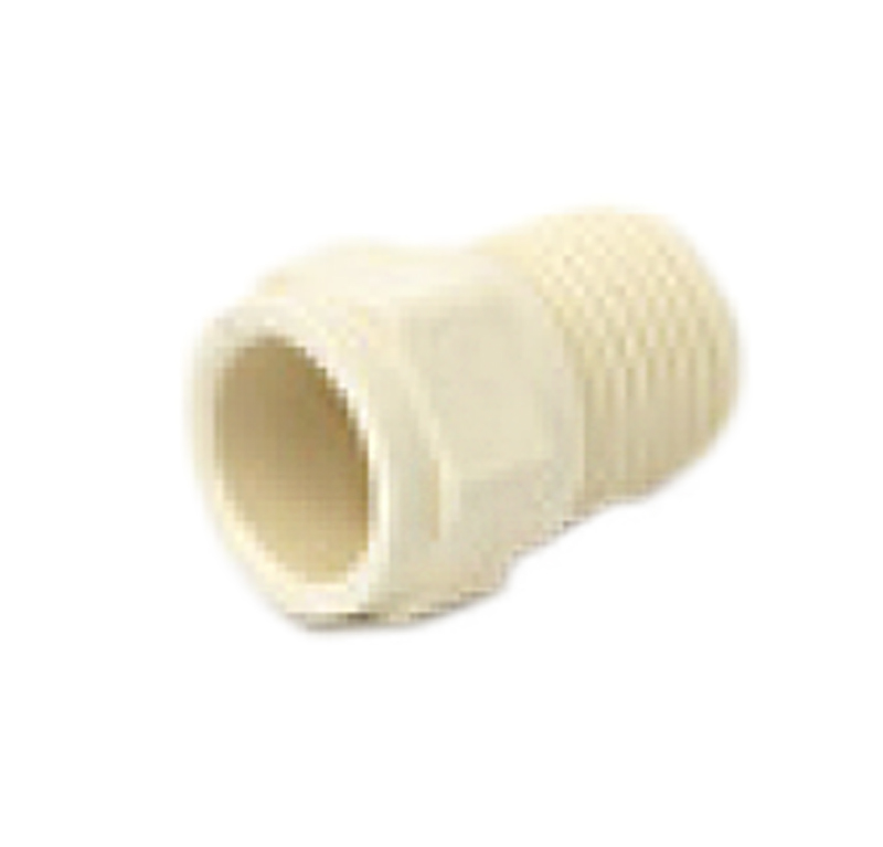 Accesorio utilizado para unir la tubería con un accesorio que tenga rosca hembra. Accesorio de CPVC fabricado por inyección, rosca externa , NTC 1062, con diámetro Nominal de 1/2 a 1 pulgadas