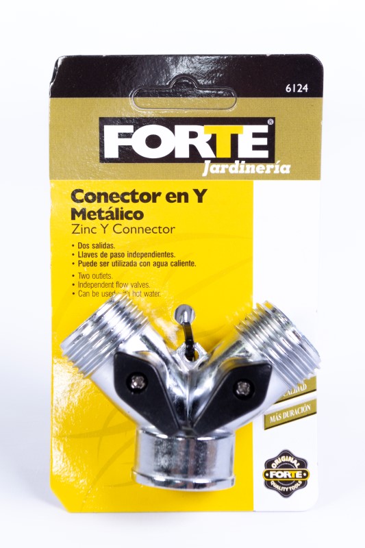 Fabricado en Zamak. Conector en Y de 2 Salidas. Alta resistencia y durabilidad, resistente a la intemperie, puede ser usado con agua caliente. Usado en mangueras de 1/2pg. Útil en el riego de jardines y limpieza de automóviles o animales. Empaque tarjeta y blíster.