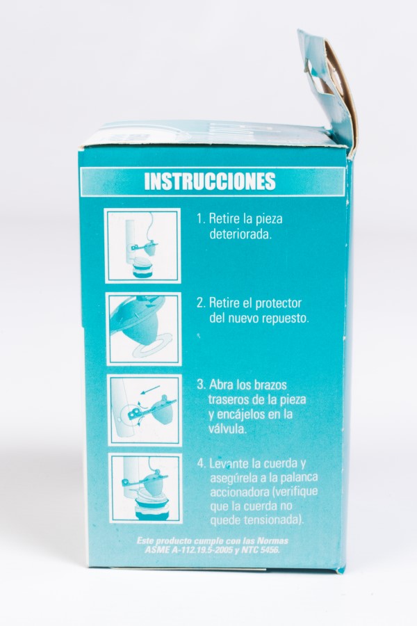 Para uso en sanitarios de alto consumo. Sanitario de descarga de 15 litros (3,9 galones). Bolsa x 8 unidades. Repuesto Flapper Advance con acople BCA (Bajo consumo de agua) para válvulas de descarga sencilla, fabricado en materiales de alta ingeniera resistentes a la corrosión por el agua.