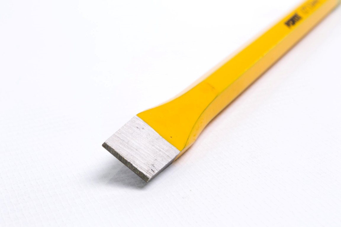 Fabricado en acero aleado 45. Forjado, templado y revenido bajo especificaciones técnicas. Excelente resistencia mecánica, se utiliza para cortar y marcar chapa en frio, también es utilizado en soldadura eléctrica para retirar escoria queda del hierro, luego de la soldadura. Usada para trabajos de construcción y metalmecánica.
