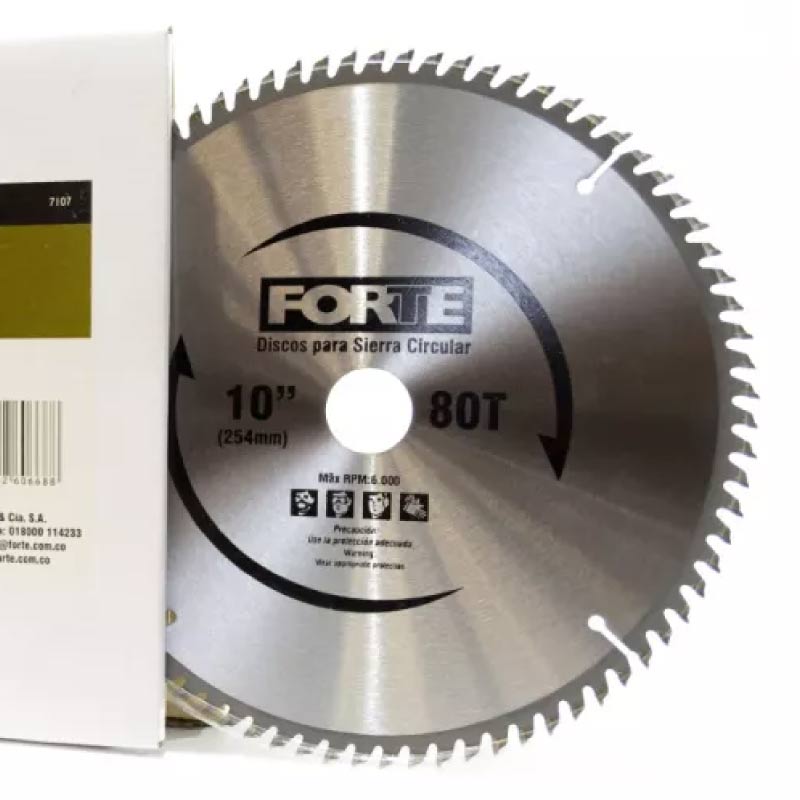 Cuerpo fabricado en acero al carbono para mayor resistencia. Diente con pastilla de tungsteno para mayor dureza y rendimiento en el corte. Pastilla de tungsteno soldada por láser que evita el desprendimiento en el momento de operación. Se utiliza para corte de madera. Diámetro 10pg, # de dientes 80, Eje 30 mm * con bujes 1pg (25 mm) y 5/8pg (16 mm). Empaque blíster individual con bujes incluidos.