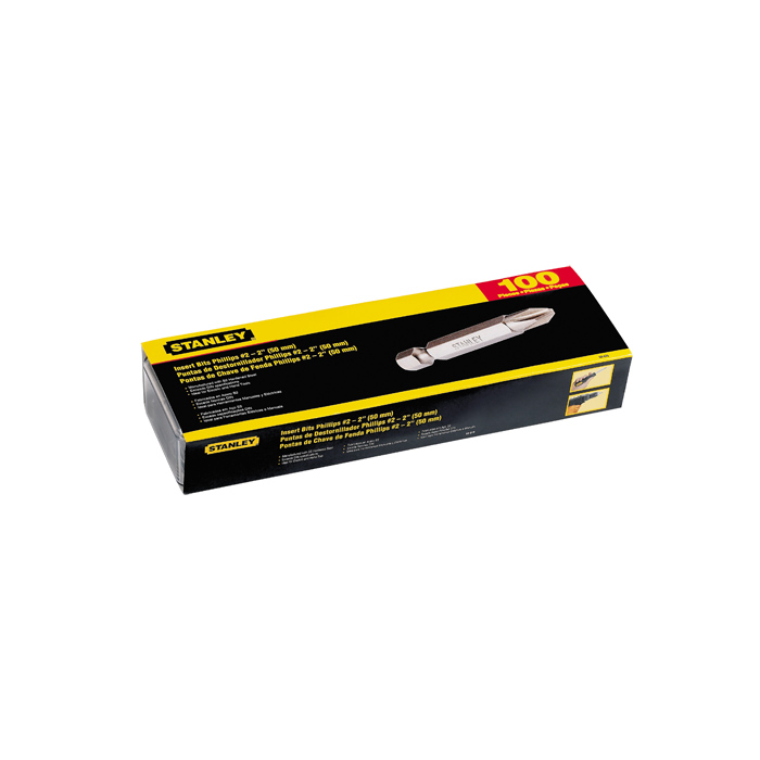Estuche Plástico de 100 Piezas · 2" Largo (50 mm) · N°2 1/4" Punta Phillips . Hecho de Acero S2. Excede Normas DIN. Ideal para herramientas Electricas y Manuales.