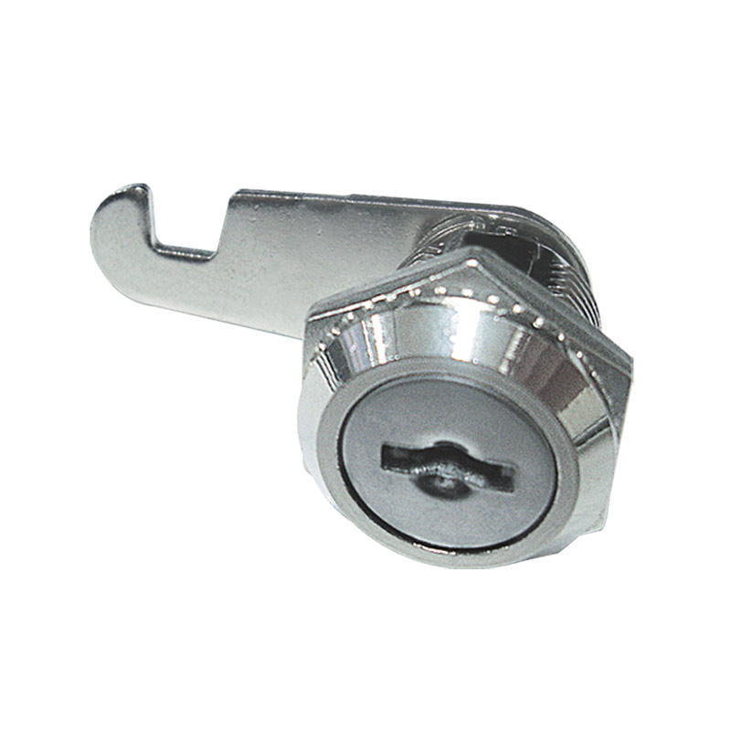 Cerradura para muebles modelo 1555 Nuovo, con acabado níquel brillante. Diseñada para gabinetes, guanteras, vitrinas, muebles y escritorios, compatible con puertas de ala corredizas. Cilindro de guardas en zamak para mayor seguridad. Incluye 2 llaves simétricas con protector plástico. Fabricada en lámina de acero para alta resistencia. mecanismo de giro, tipo gancho.