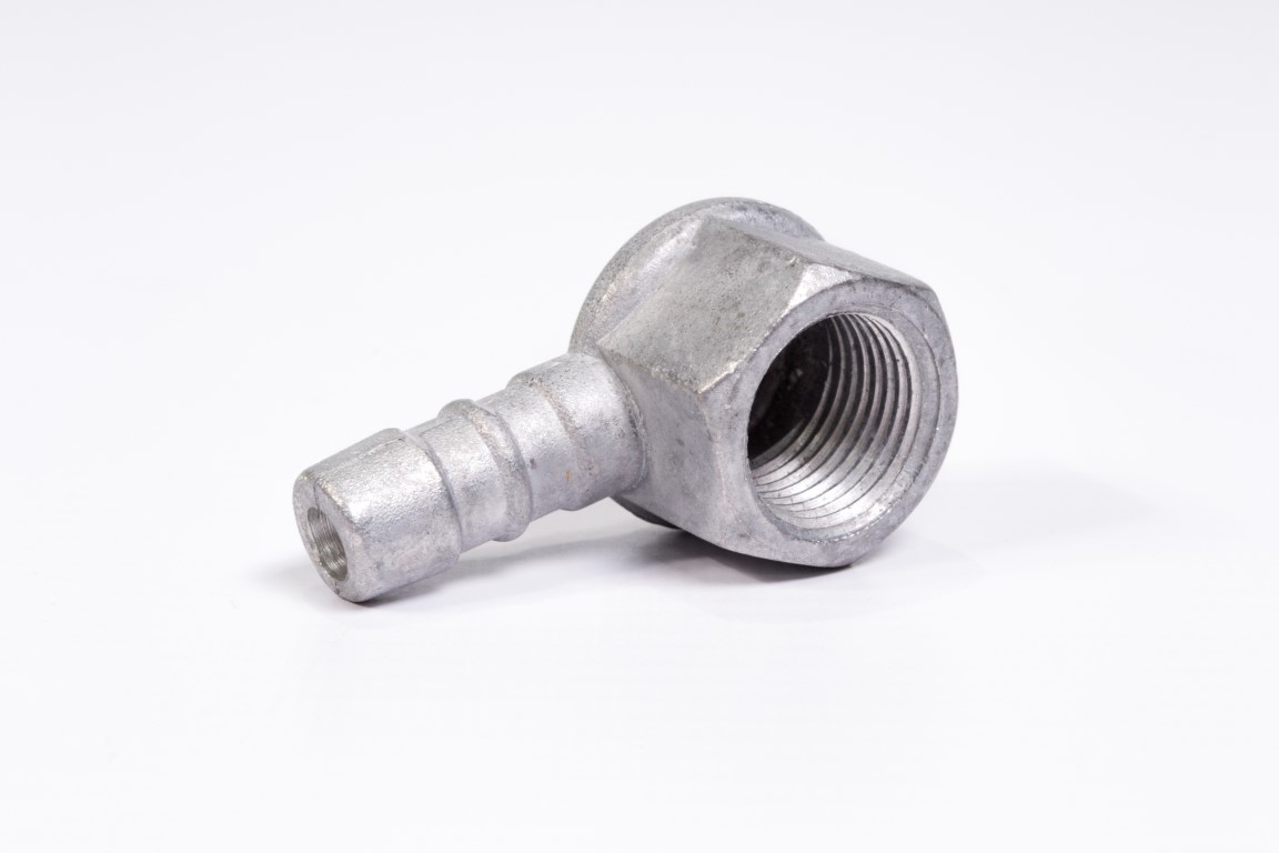 Accesorio en aluminio para ser ensamblado en mangueras de caucho tipo 1 y 2 usadas en instalaciones para gas GN y GLP.