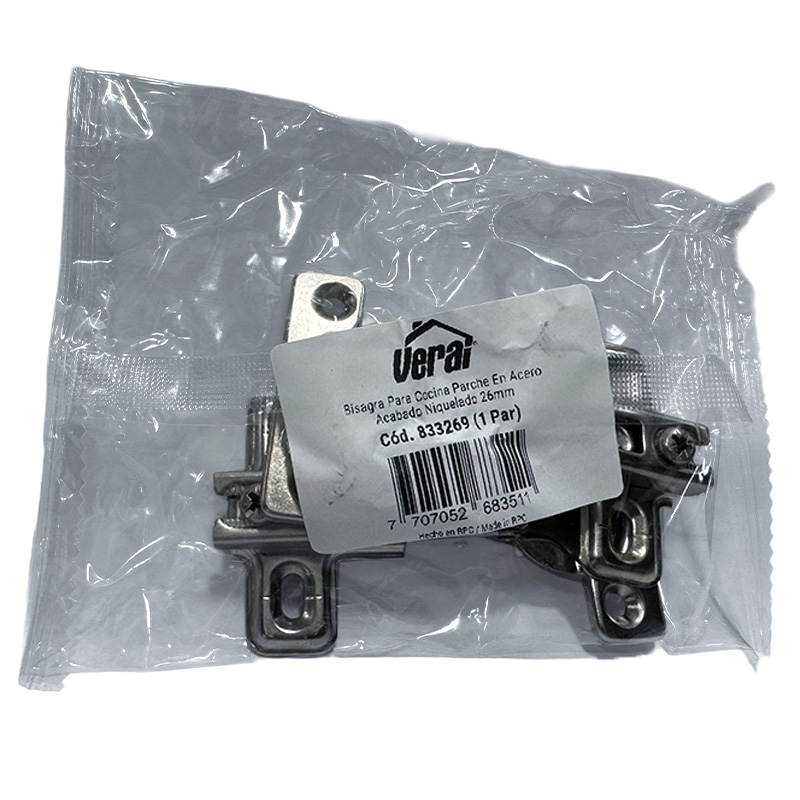 Bisagra de cocina parche o semiparche en acero, con acabado niquelado de 26mm, está fabricada en acero Cold Rolled con recubrimiento electrolítico de níquel, brindando mayor durabilidad y resistencia a la corrosión. Cuenta con ajuste de altura y profundidad para una instalación precisa y un ángulo de apertura de 110 grados. Es ideal para tableros con espesores de 15mm a 18mm, con una capacidad de carga de hasta 1.5 kg por par. Su ciclo de vida es de hasta 40,000 aperturas y cierres. Esta bisagra es perfecta para muebles de cocina, baños, laboratorios, consultorios y muebles de hogar.