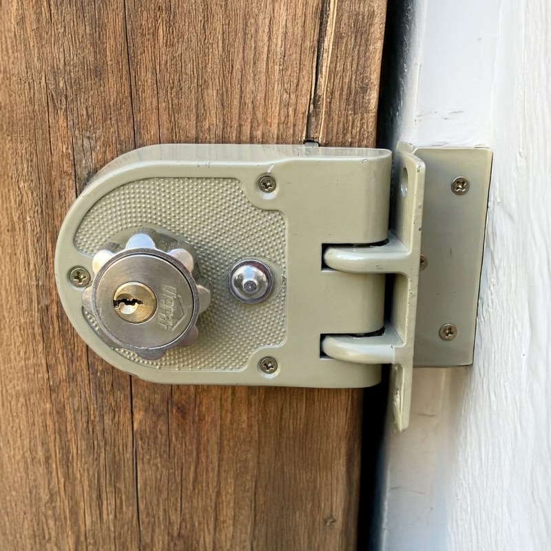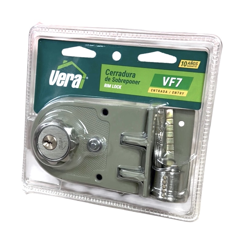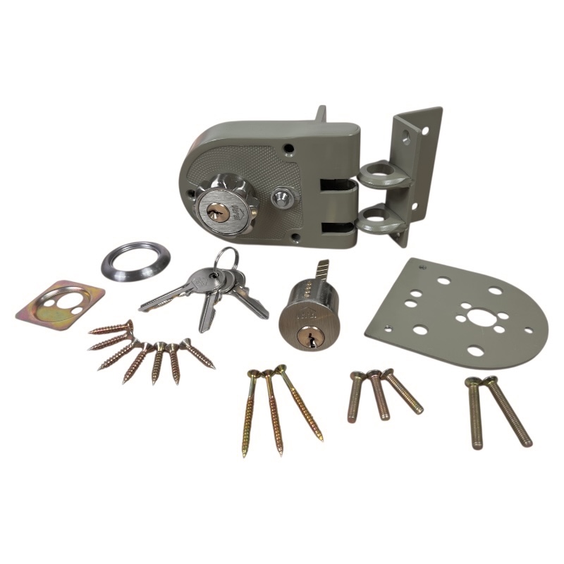 Doble cilindro con roseta interior para mayor seguridad en puertas corredizas o batientes. Backset de 60 mm, apta para puertas que abren hacia adentro, afuera o corredizas de 30 a 60 mm de espesor. Incorpora doble pestillo vertical de 6 mm en acero forjado o galvanizado, accionado por roseta interior o llave en ambos lados. Botón para bloquear pestillos en posición superior y permitir paso libre. Contratapa y cantonera plana en acero para soldar. Cilindros en latón de 5 pines y cilindro exterior macizo en zamak niquelado con guardas remachadas. Incluye tres llaves en latón niqueladas. Se recomienda bloquear con llave si no hay personas adentro.