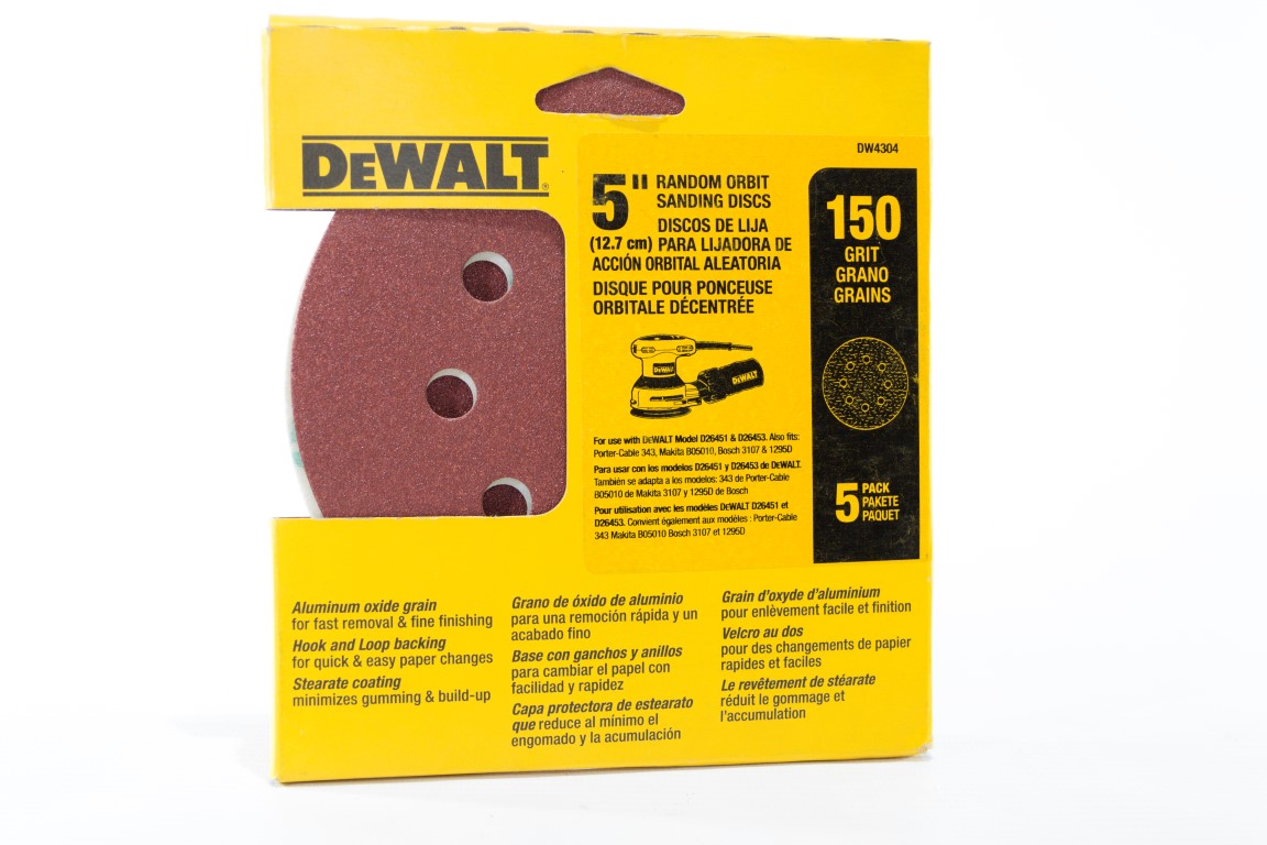Disco Lijadora Orbital Grano No 150. Huecos de lijado 8. Tamaño de 5 pulgadas. Discos Abrasivos para Lijadora Roto Orbital. Adhesivos de resina resistente a temperaturas elevadas y a la ruptura por su revestimiento de estearato que reduce la gomosidad.