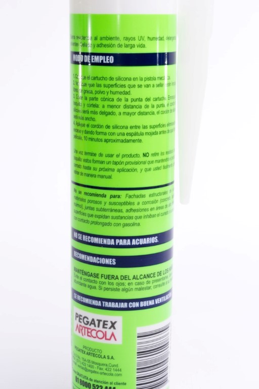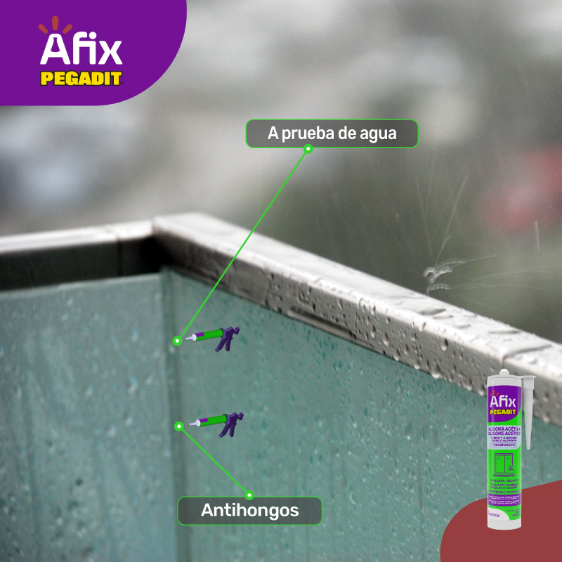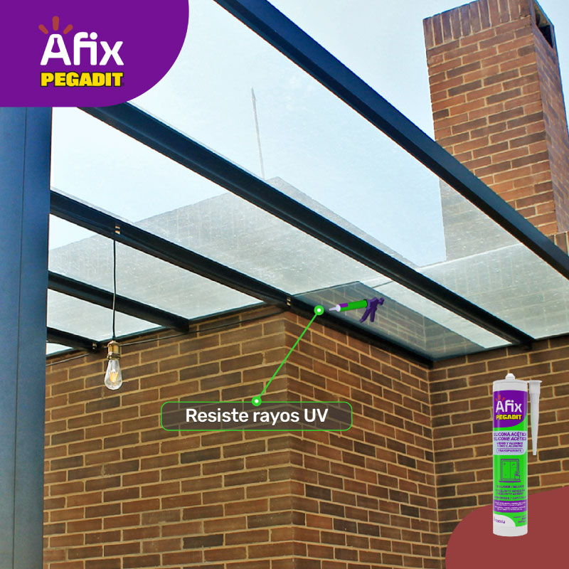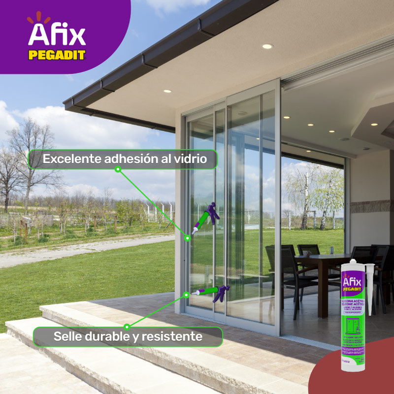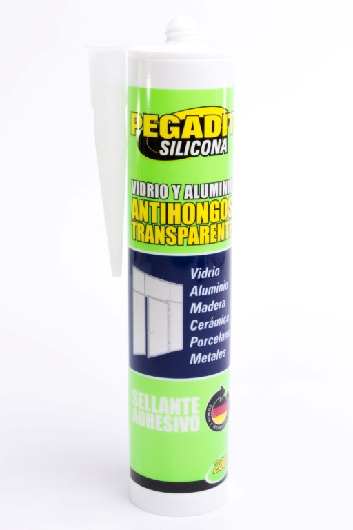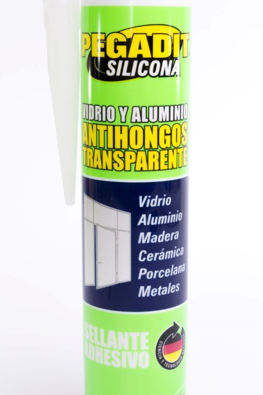 Silicona transparente antihongos de excelente adhesión en uniones entre aluminio y vidrio. Ideal para trabajos de ventanería. Muy buen desempeño a la intemperie . Referencia 402853 de Pegatex