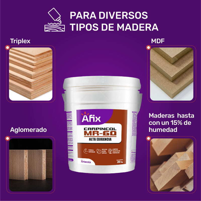 Adhesivo de envase plástico con dosificador elaborado a base de PVA (acetato de poli vinílico), para la industria de la carpintería y madera. Utilizado en maderas con un porcentaje de humedad y es de secado rápido.