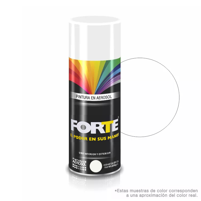 Pintura en aerosol multipropósito de acabado mate, ideal para aplicar en diferentes superficies como madera, metal, cerámica o concreto. Fácil aplicación y rápido secado. Rendimiento aproximado de 1m2 por envase. Alta adherencia y cubrimiento. Presentación de 400 ML. Referencia 8840 Pinte.