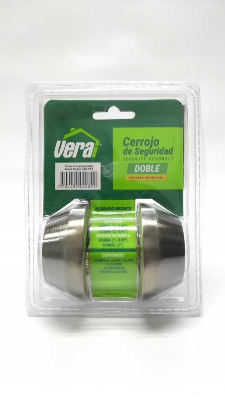 Cerrojo De Seguridad Doble Llave-Llave En Acabado Bronce Antiguo