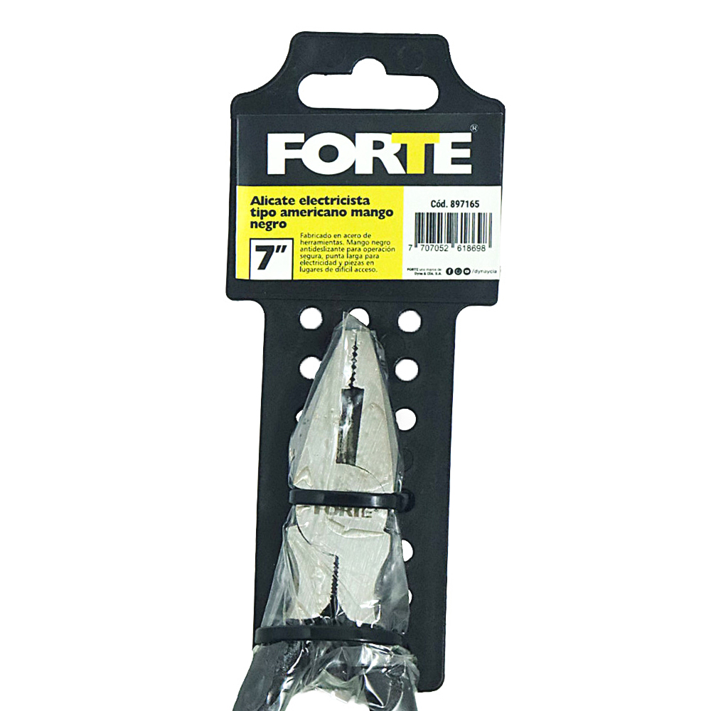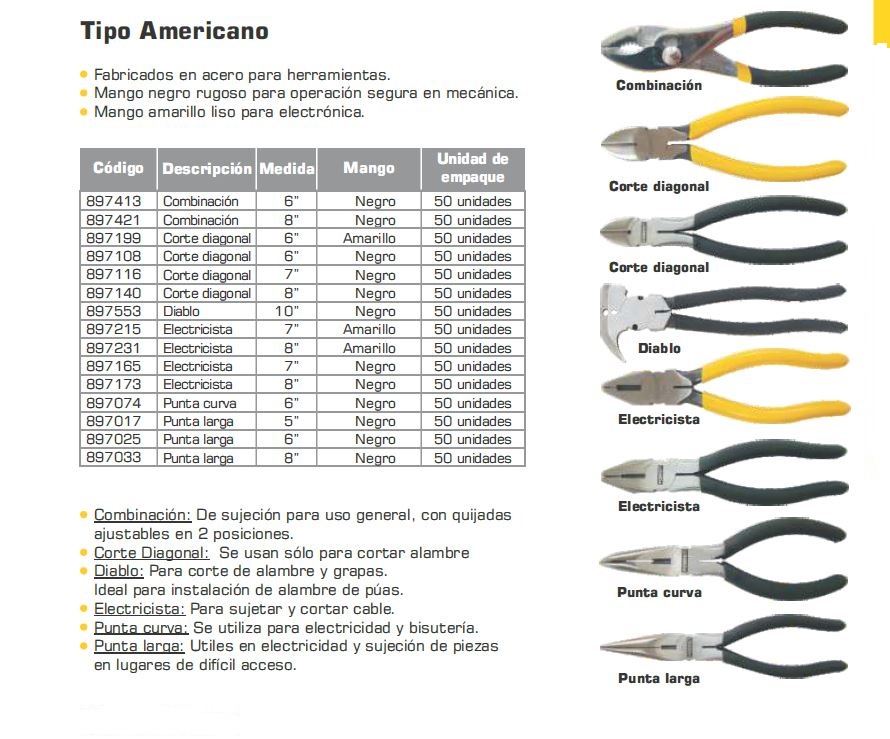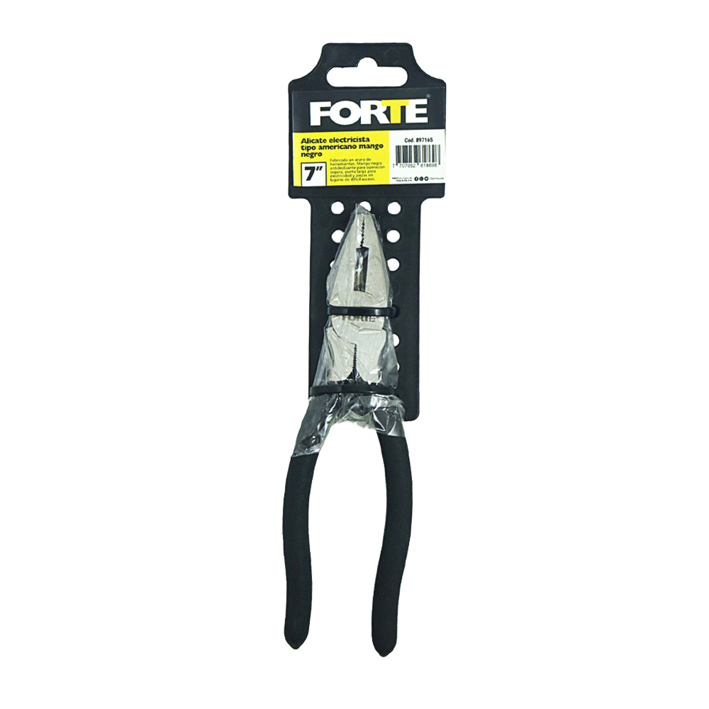 Fabricado en acero de herramientas. Mango negro rugoso para operación segura. Útil para sujetar y corta cable.
