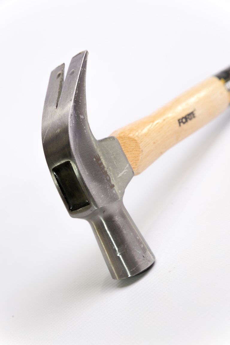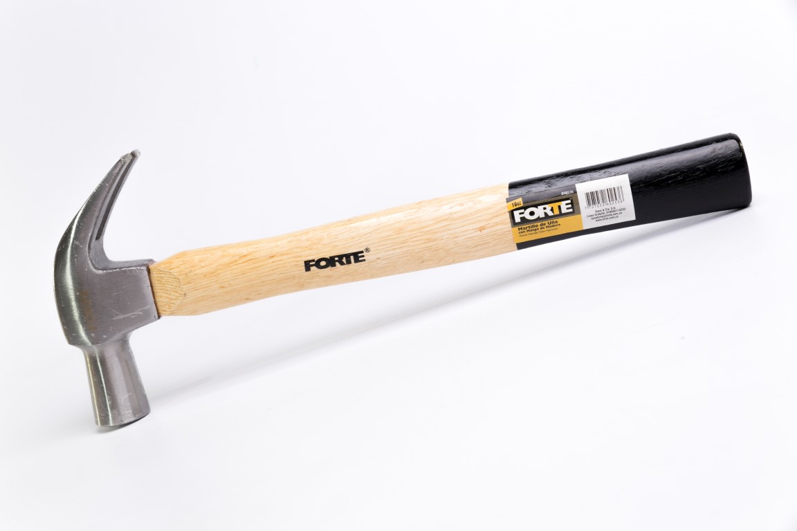 Parte cilíndrica cónica dura para golpear y romper. Uña Curva para retirar puntillas o clavos. Mango fijado a la cabeza con pegante epóxico. Cabeza de 16 Onz (1 Lb) y Boca de 25 mm.
