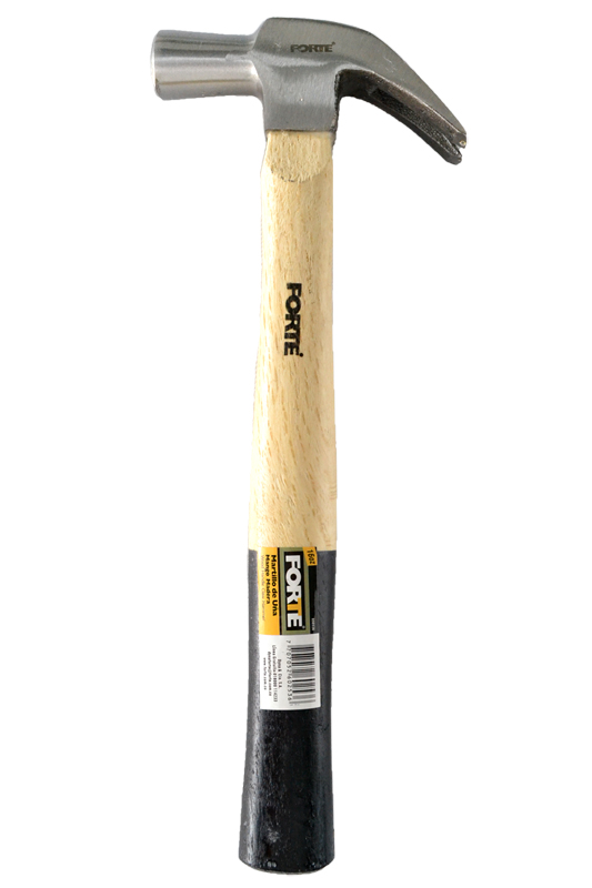 Parte cilíndrica cónica dura para golpear y romper. Uña Curva para retirar puntillas o clavos. Mango fijado a la cabeza con pegante epóxico. Cabeza de 16 Onz (1 Lb) y Boca de 25 mm.
