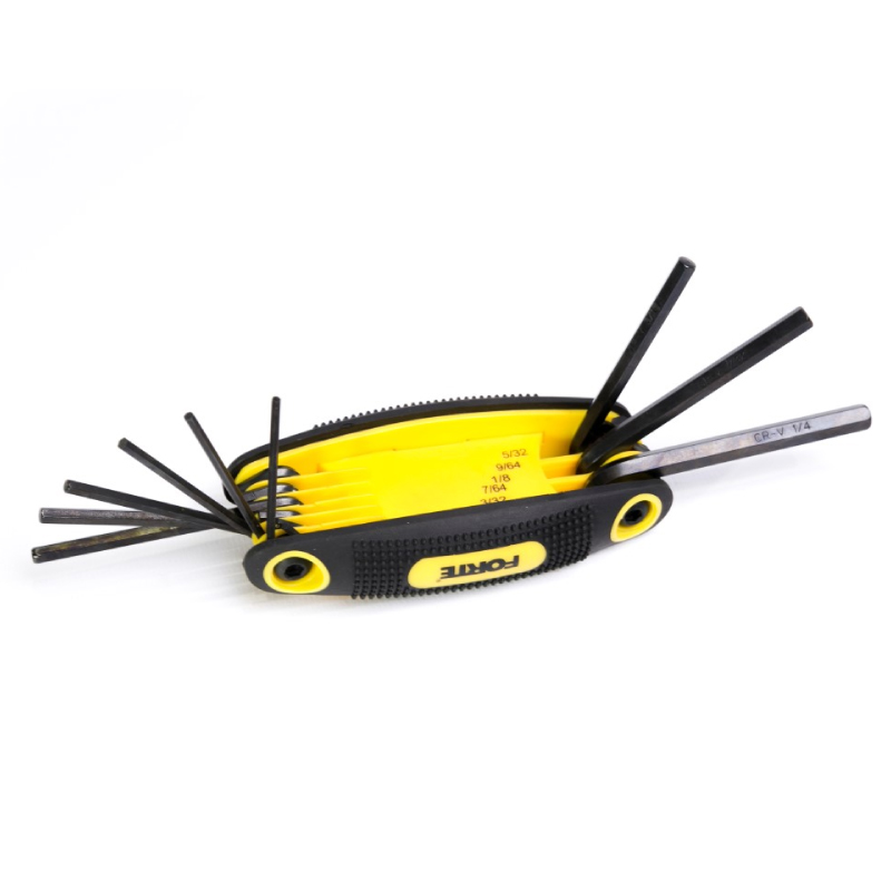 Llaves de acero Cromo Vanadio con carcaza en fibra de vidrio. Medidas 5/64pg, 3/32pg, 7/64pg, 1/8pg, 9/64pg, 5/32pg, 3/16pg, 7/32pg, 1/4pg en pulgadas - 9 llaves deslizables.