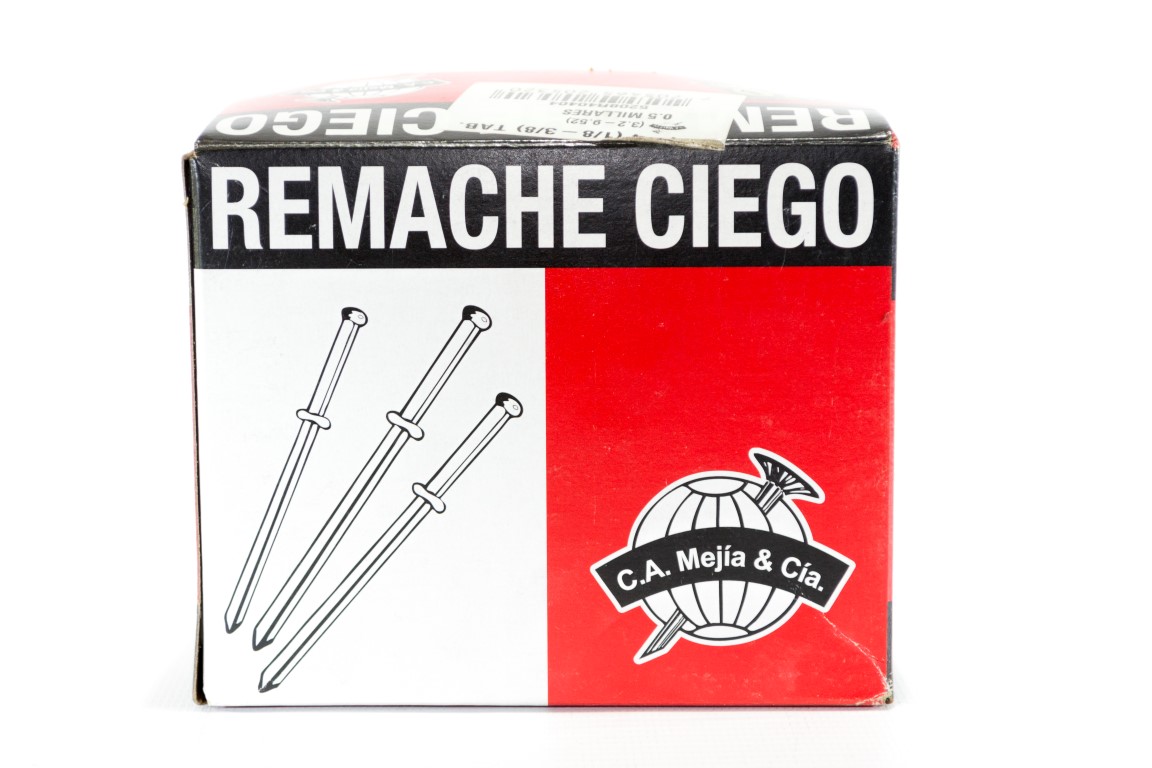 El remache ciego se compone de dos elementos, el remache de aluminio y el clavo o mandril. son utilizados para fijar piezas donde se requieren procesos de ensamble agiles, seguros y fuertes. son fabricados segun la norma internacional ifi 114 en diferentes tipos y tamanos para satisfacer una amplia gama de aplicaciones segun las diferentes necesidades.