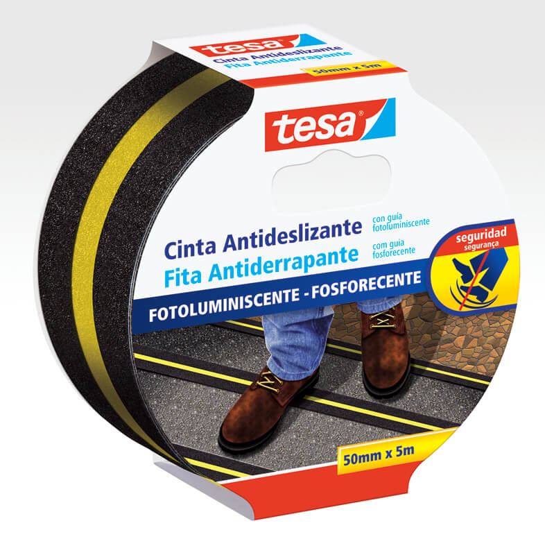 Cinta antideslizantes de soporte de PVC y tejido recubierto de abrasivo y línea fotoluminicente para permitir evacuaciones seguras. Es la mejor opción en protección y prevención de deslizamientos en zonas de alto riesgo donde se requiera dar pasos seguros.