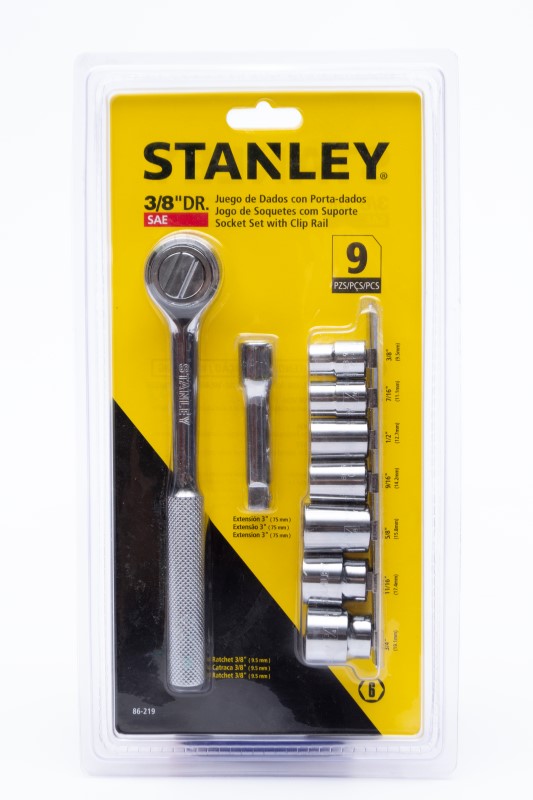 10 Piezas · Contenido · (1) 3/8 pul Ratchet · (7) 3/8, 7/16, 1/2, 9/16, 5/8, 11/16 & 3/4 pul Dados · (1) 3 pul Extensión · (1) Portadados