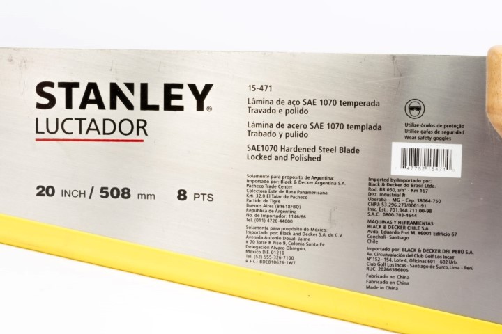 95-IB] 15-471. 7 DPP Dientes por pulgada (8 PPP puntas por pulgada) · 20 pul Largo-Hoja (508 mm) - Hoja de acero de alto contenido de carbono. Hoja recubierta con barniz protector. Cobertura plástica protege los dientes del serrucho antes y después de la compra como también mejora la presentación en el punto de venta. Dientes afilables, trabados y pulidos.