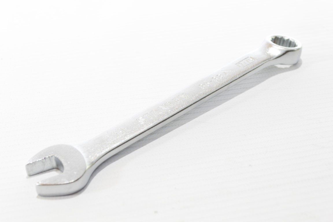4-86-834. 7/16 pulgadas. Las llaves combinadas Stanley están hechas para sobrepasar largamente las normas industriales ANSI. Su extremo abierto está orientado a 15º para lograr ajustes rápidos. Mientras que su extremo de corona de 12 puntas brinda un ángulo de recuperación de 30º y máxima seguridad para altos aprietes. Incorporan el sistema MaxiDrive™ de puntas redondeadas. ANSI B107.6.