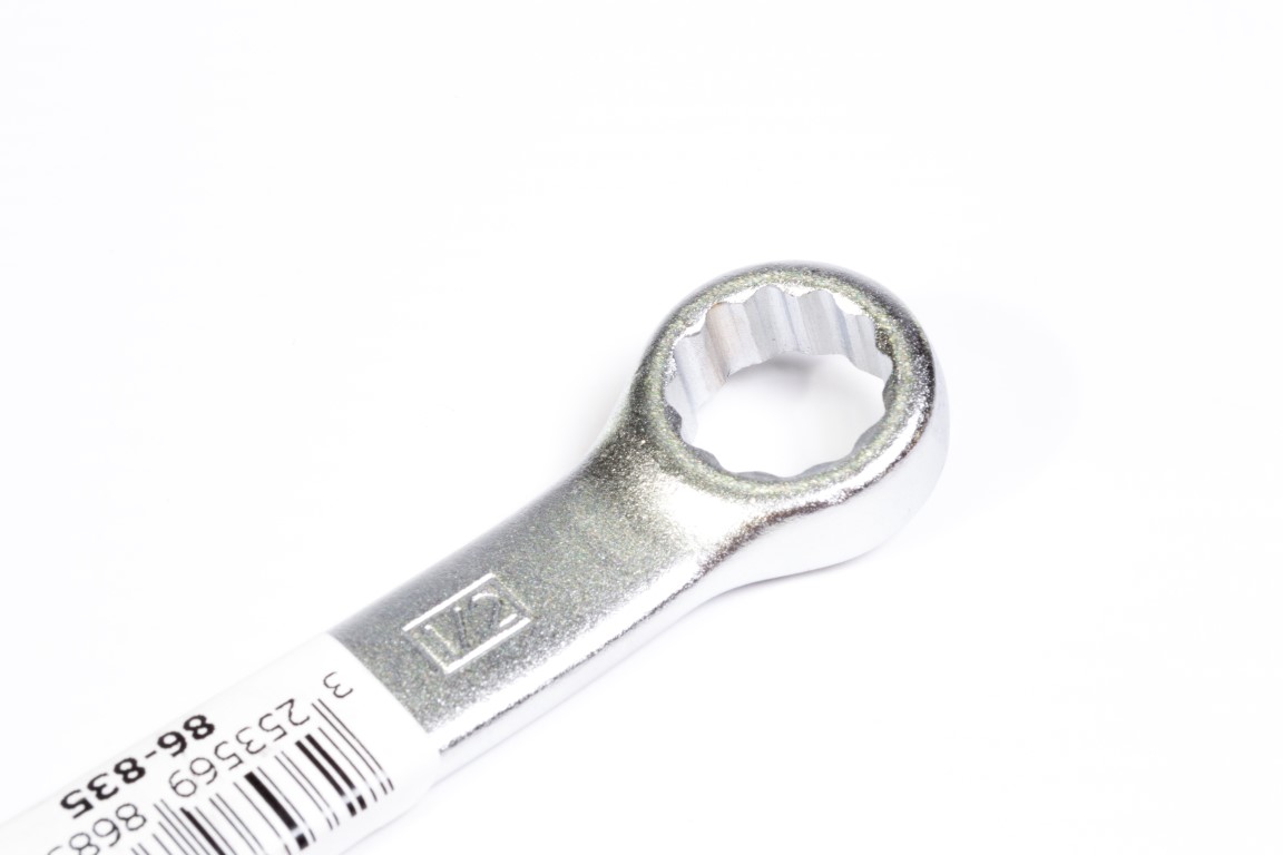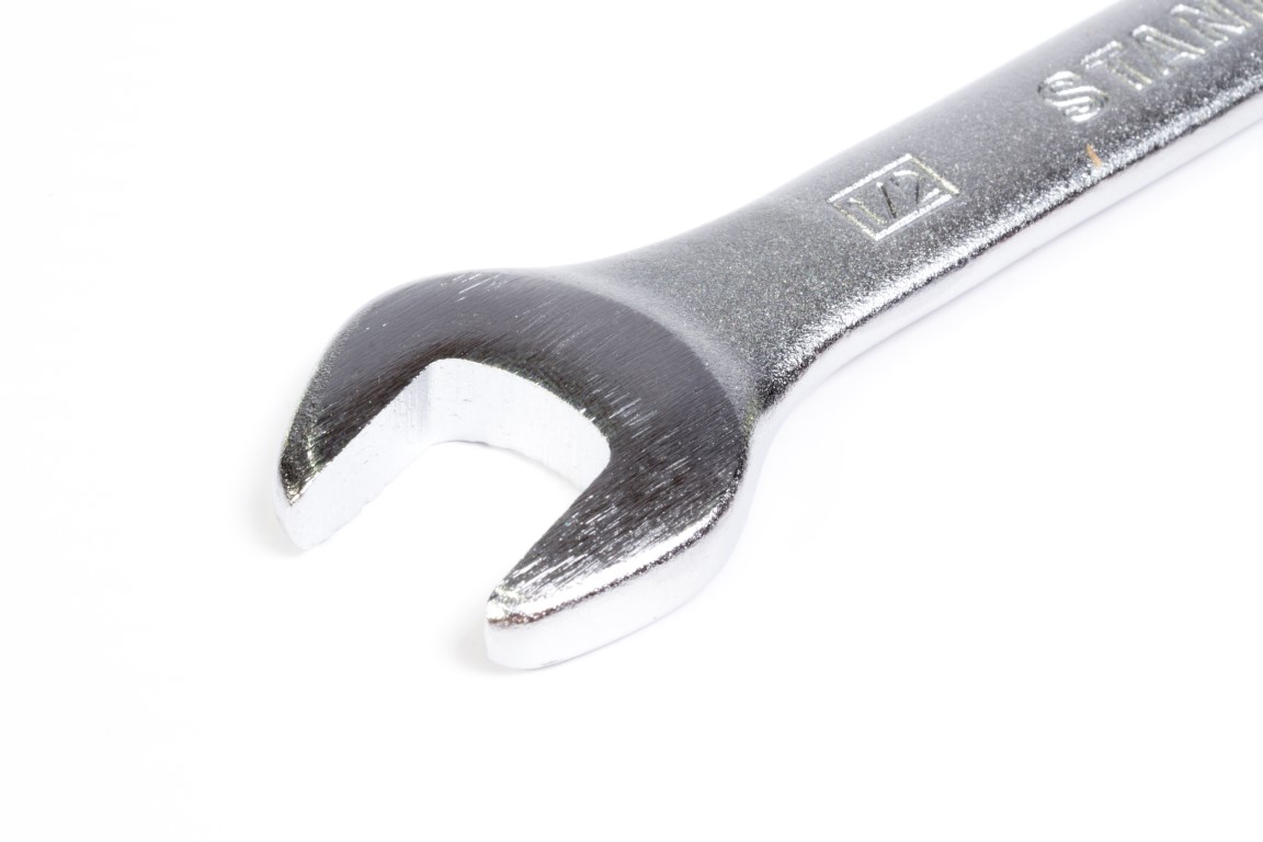 4-86-835. 1/2 pulgada. Las llaves combinadas Stanley están hechas para sobrepasar largamente las normas industriales ANSI. Su extremo abierto está orientado a 15º para lograr ajustes rápidos. Mientras que su extremo de corona de 12 puntas brinda un ángulo de recuperación de 30º y máxima seguridad para altos aprietes. Incorporan el sistema MaxiDrive™ de puntas redondeadas. ANSI B107.6.