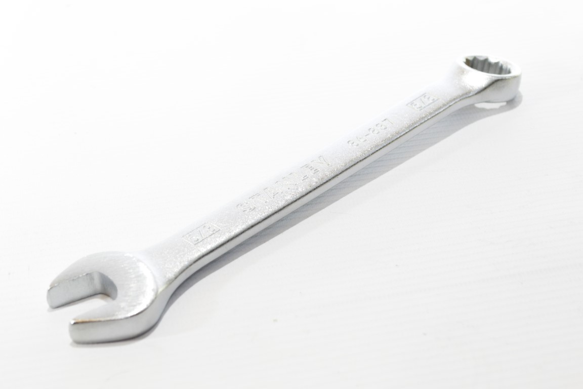 4-86-837. 5/8 pulgadas. Las llaves combinadas Stanley están hechas para sobrepasar largamente las normas industriales ANSI. Su extremo abierto está orientado a 15º para lograr ajustes rápidos. Mientras que su extremo de corona de 12 puntas brinda un ángulo de recuperación de 30º y máxima seguridad para altos aprietes. Incorporan el sistema MaxiDrive™ de puntas redondeadas. ANSI B107.6.