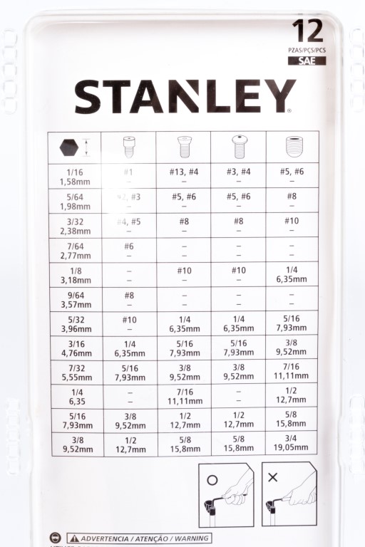 12 Piezas · Contenido · 1/16, 5/64, 3/32, 7/64, 1/8, 9/64, 5/32, 3/16, 7/32, 1/4, 5/16, 3/8 pul Tamaños