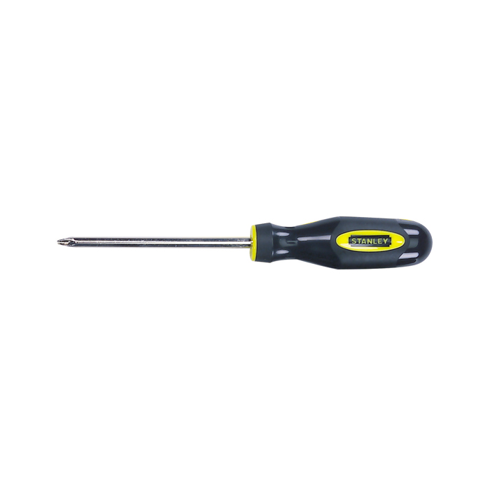 Punta Phillips N° 2 · Largo Barra 4 pul (100 mm). Mangos con cuatro lóbulos diseñados ergonómicamente para mayor torque y comodidad. Mangos codificados por colores facilitando la rápida identificación del destornillador. Barras de aleación de acero termo tratado para mayor duración. Barras niqueladas resistentes al óxido. Punta reforzada anti-deslizante.