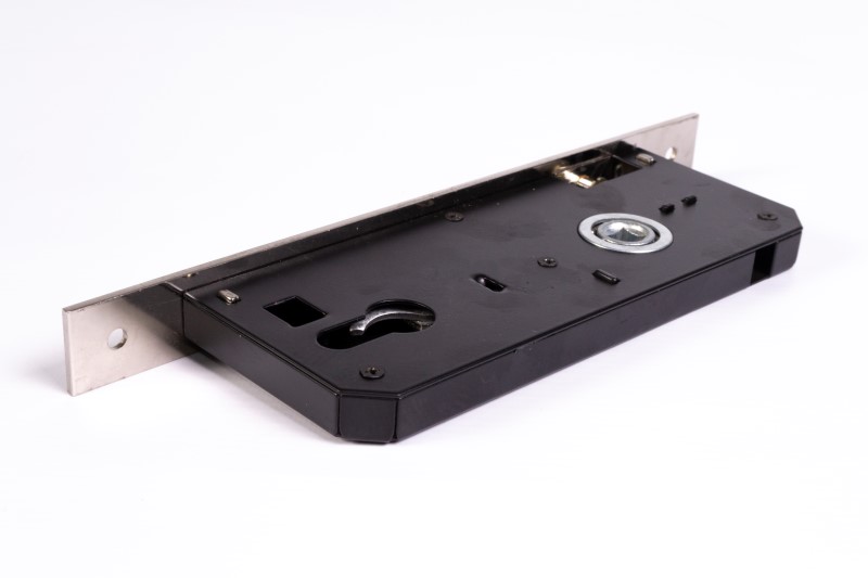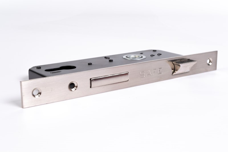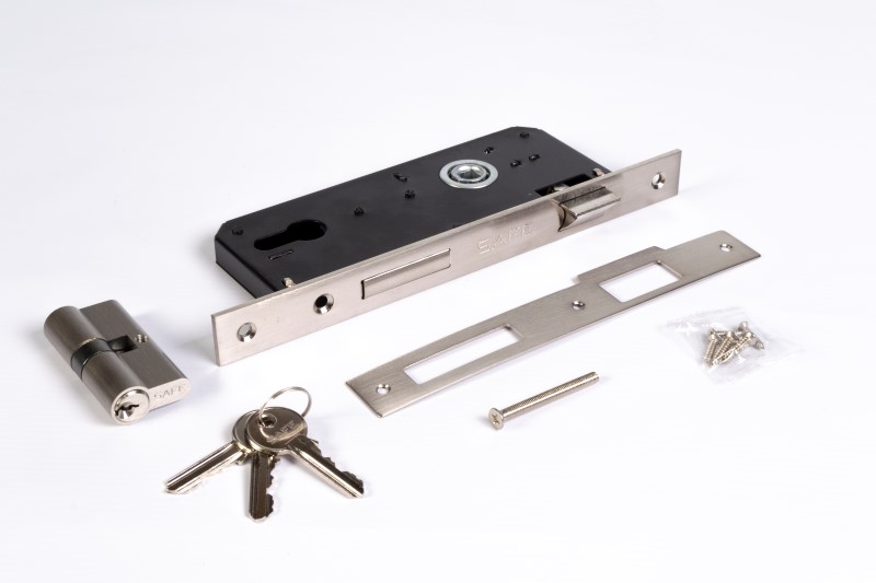Cerradura de incrustar para puertas batientes, diseñada para ofrecer seguridad y funcionalidad. Cuenta con picaporte reversible de resbalón ajustable y un resistente macho rectangular, ideal para una instalación confiable. Fabricada en acero con acabado inoxidable para mayor durabilidad y resistencia a la corrosión. Posee un cilindro doble de 60 mm tipo pera, con una distancia entre centros de 85 mm y un backset de 45, 35 y 20 mm. Incluye recibidor y tres llaves en latón con acabado niquelado. Incluye escudos del cilindro.
