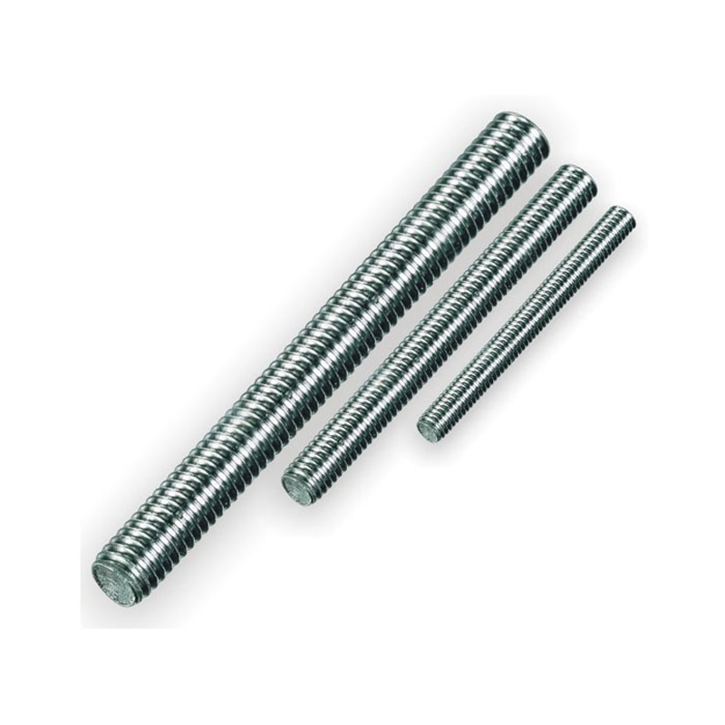 Utilizadas en construcción para montaje de soportes o sistemas de bandejas de escaleras para la conducción de cables. Fabricada en Acero bajo carbono (SAE J-429). Acero grado 2 para mayor resistencia mecánica. Diámetro 1/4pg X 1 mts. Empaque plástico X 25 Unidades.