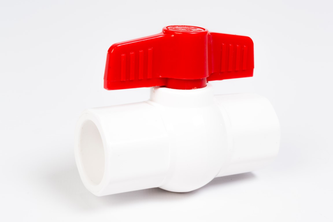 Válvula de bola PVC que no contamina el agua. Con soporte de presiones de hasta 235 psi.