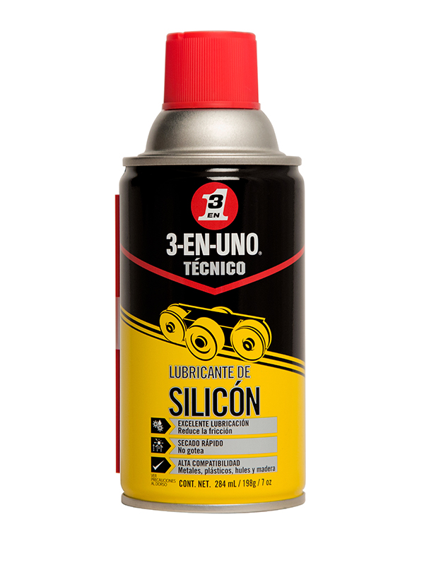 El lubricante de silicón aerosol elimina chirridos y reduce la fricción entre las superficies evitando ruidos molestos. Resistente al agua. Puede usarse en metales y no-metales incluyendo madera y caucho. Reduce la fricción mientras protege contra oxido y corrosión. Seca rápido y no deja residuos.