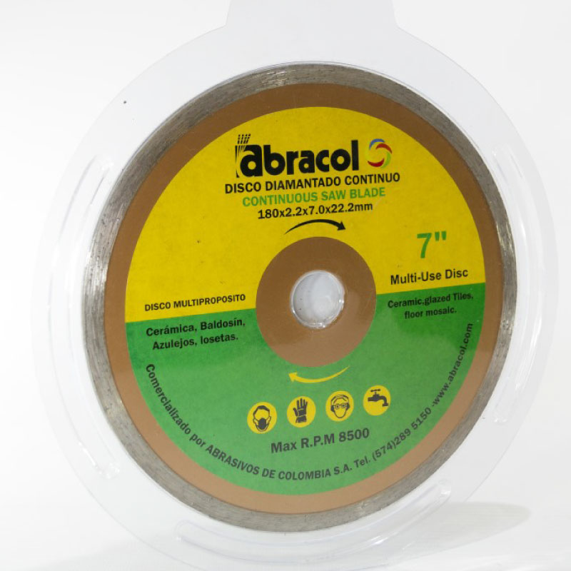 SEDIDCH00057. Disco para uso de cortadoras portátiles excelente acabados en el sector de la construcción. Diamante sintético con alta resistencia a la fricción. Dimensiones 180mm x 2.2 mm x 7mm.
