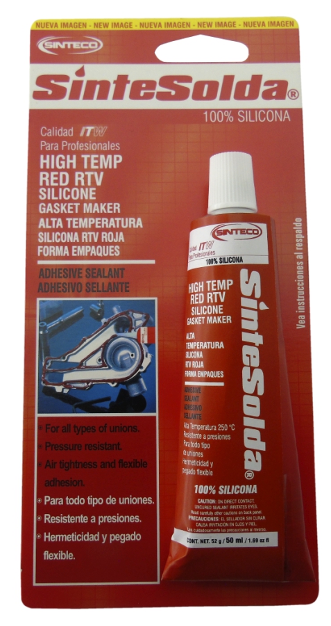 Es una silicona de un solo componente que vulcaniza a temperatura ambiente, por acción de la humedad ambiente, con desprendimiento de ácido acético, generando un elastómero, de gran flexibilidad y resistencia mecánica, que se adhiere fuertemente a vidrio, metales, madera, cerámica, fundición, aluminio, aleaciones metálicas y algunos plásticos. La SILICONA ROJA FORM-A-GASKET tiene buena resistencia a la intemperie, vibración, humedad y temperaturas extremas.